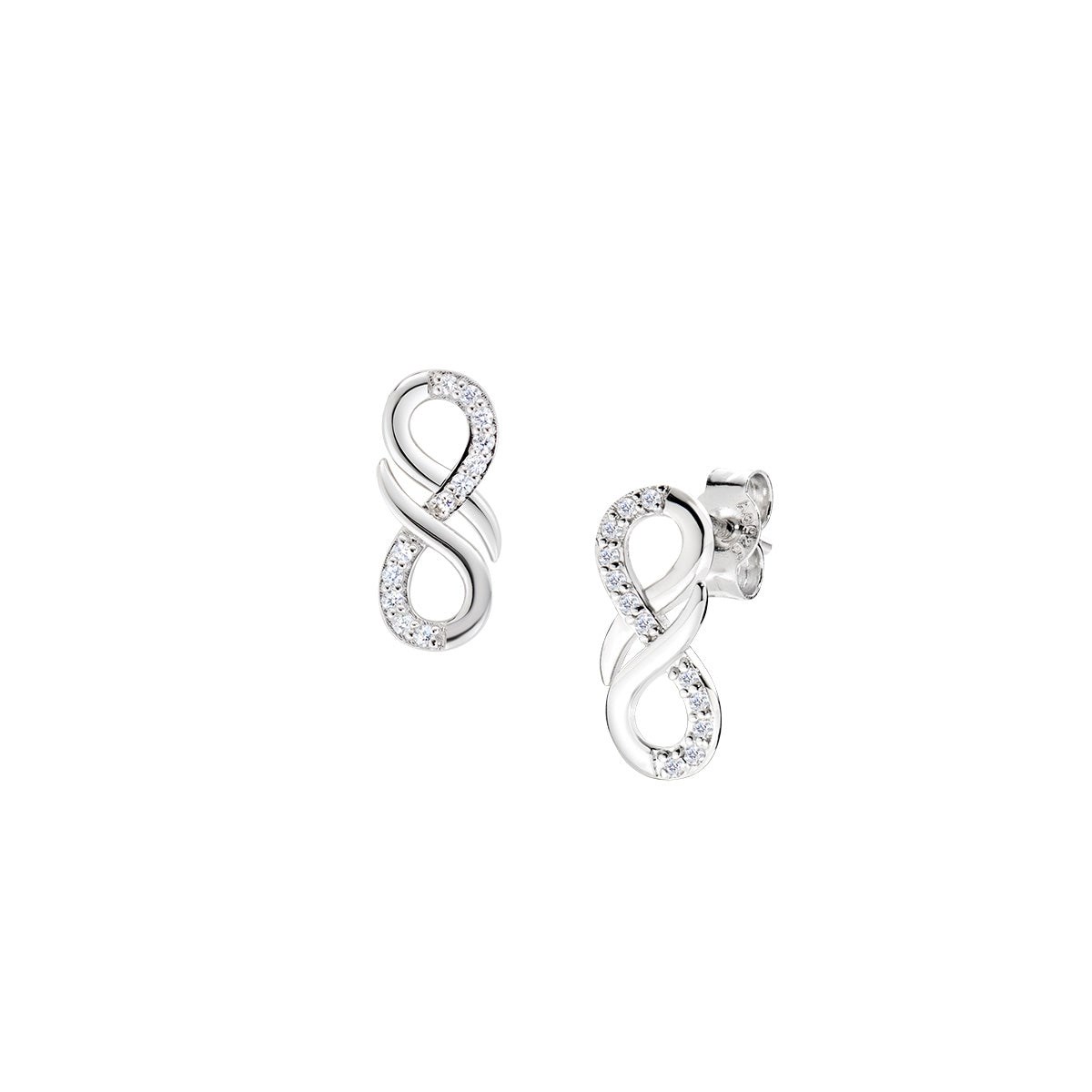 Orecchini donna amen, EINLUBBZ, collezione amore infinito, in argento 925 rodiato e zirconi bianchi.