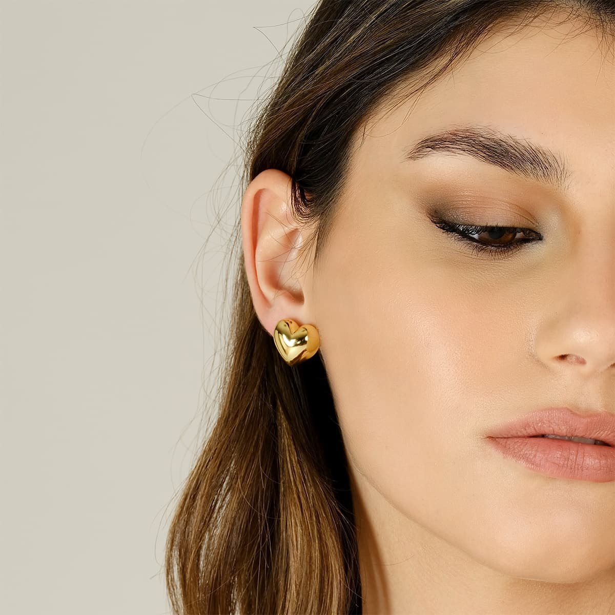 Orecchini donna amen, ORCUBOGG3, collezione amore, in argento 925 dorato a forma di cuore bombato.