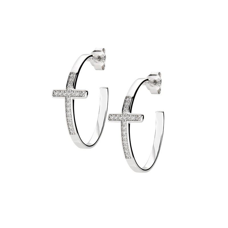 Orecchini donna amen, ECECROBBZ, collezione croci, in argento 925 con zirconi, diametro 2cm, chiusura a farfallina
