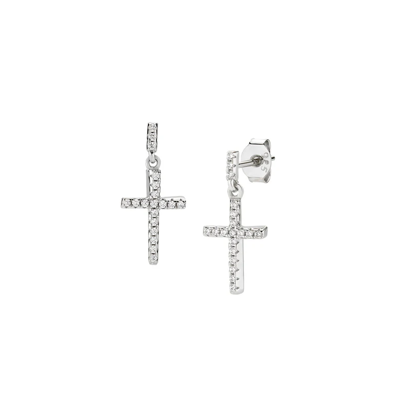 Orecchini donna amen, ORAPCRBBZ1, collezione croci, in argento 925 con zirconi, pendente di 1, 2cm, chiusura a farfallina