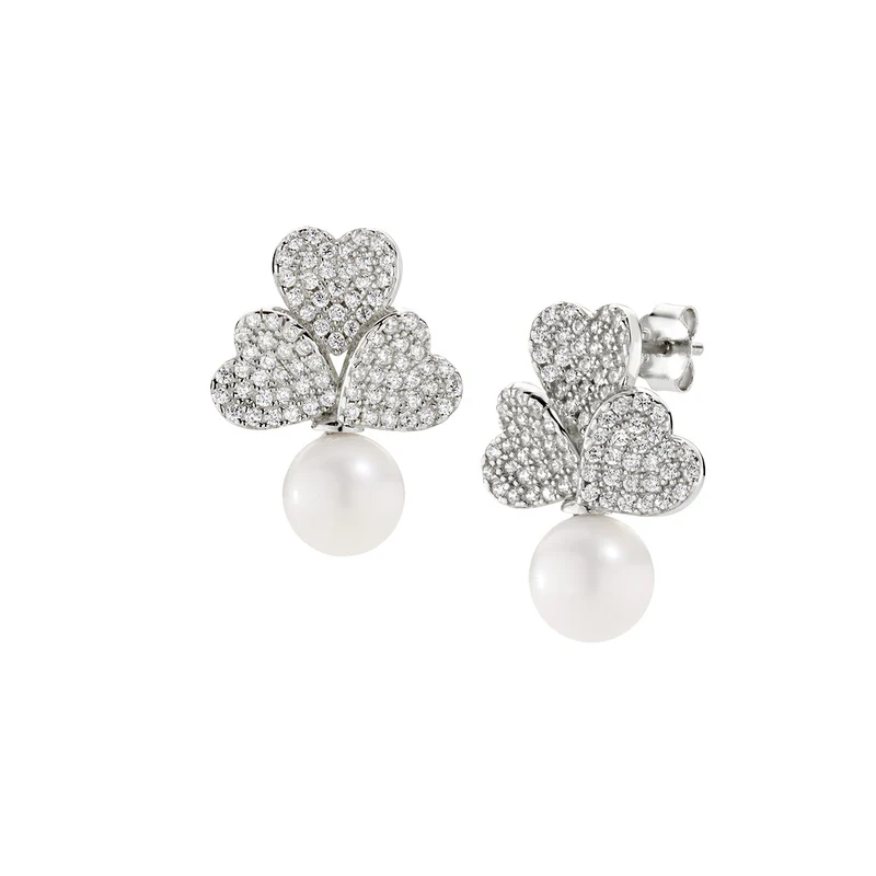 Orecchini donna amen, ORFIPEBBZ, collezione cuore, in argento 925 con zirconi e perla di 5mm