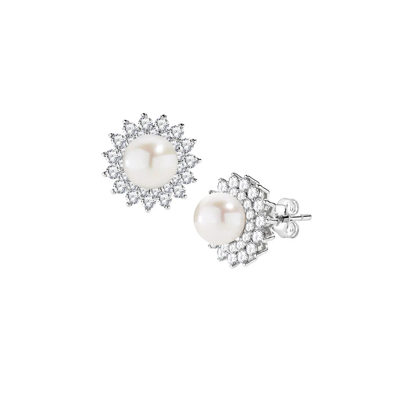 Orecchini donna amen, ESOPEBBBZ3, collezione fiori, in argento 925 con zirconi e perla di 6mm