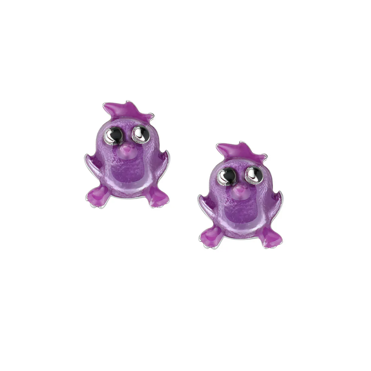 Orecchini unisex amen, JEBIB, collezione junior, piccoli orecchini a lobo in argento 925 rodiato con smalto viola, fucsia, bianco e nero.