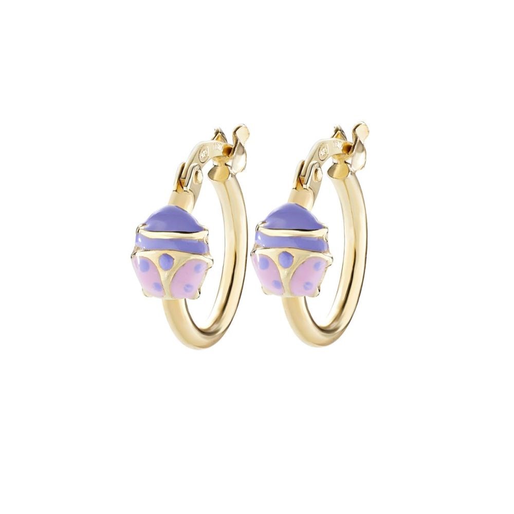 Orecchini bimba amen, ORJCOGLI1, collezione junior, in Argento Dorato con Coccinelle Smaltate Rosa e Lilla Misura 10 mm