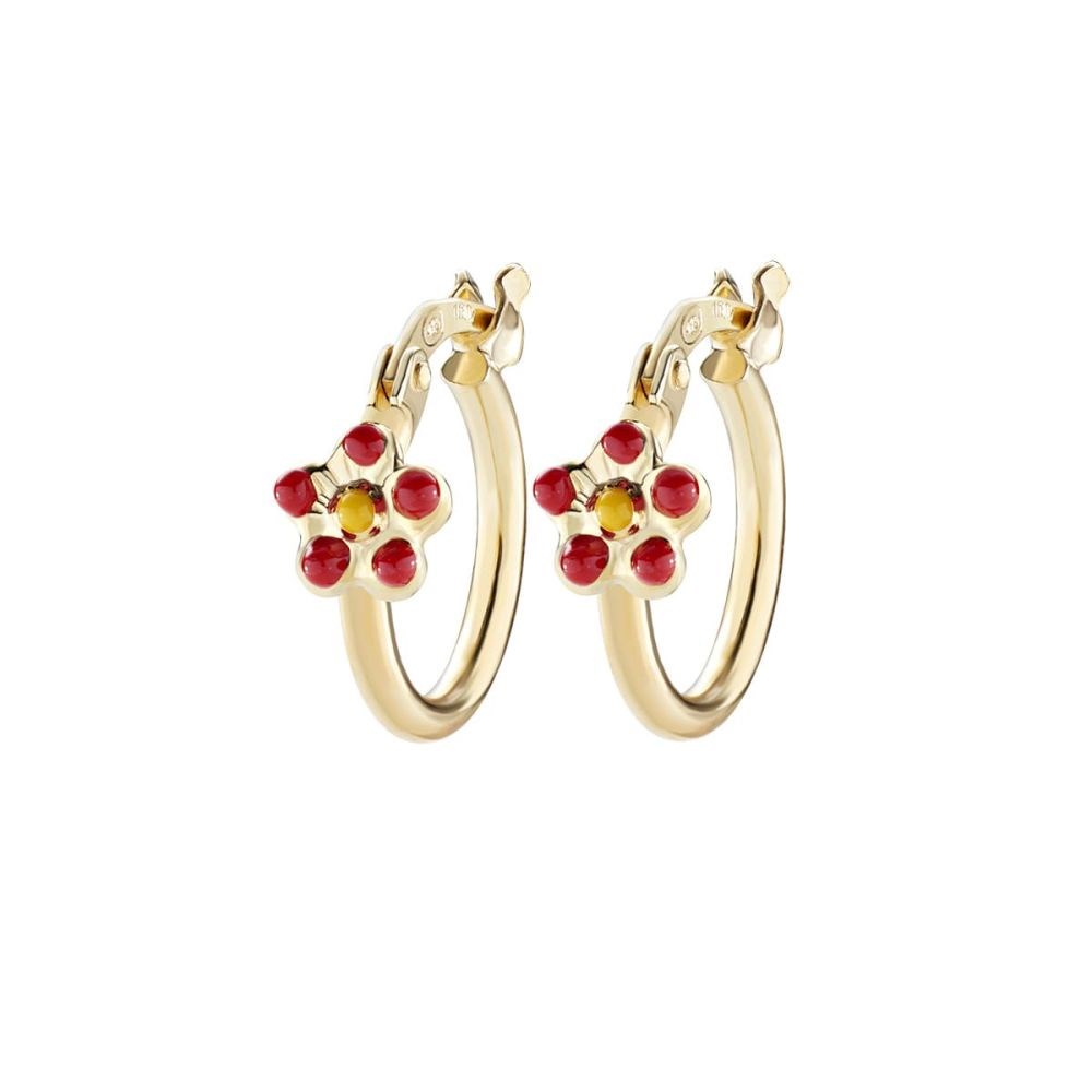 Orecchini bimba amen, ORJFIGR1, collezione junior, in Argento Dorato con Fiore Smaltato Rosso e Giallo Misura 10 mm