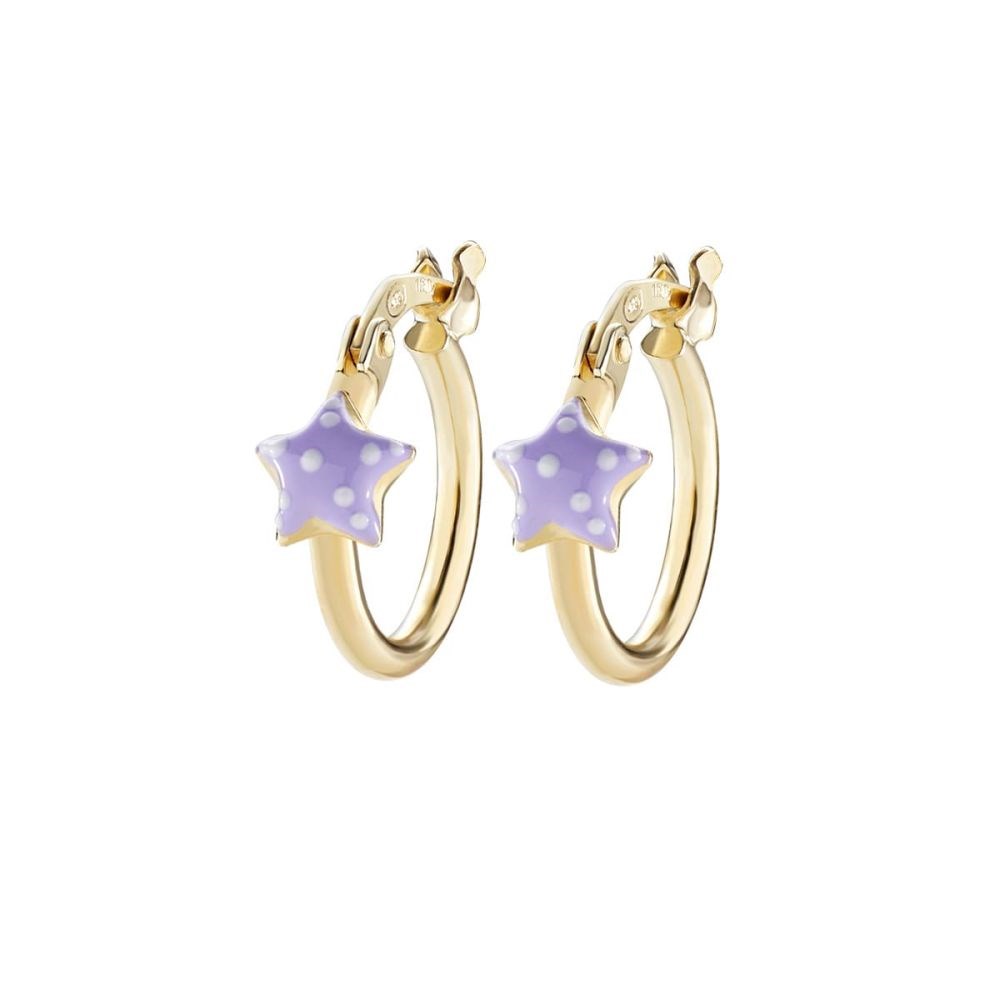 Orecchini bimba amen, ORJSTGLI1, collezione junior, in Argento Dorato con Stella Smaltata Lilla e Bianco Misura 10 mm