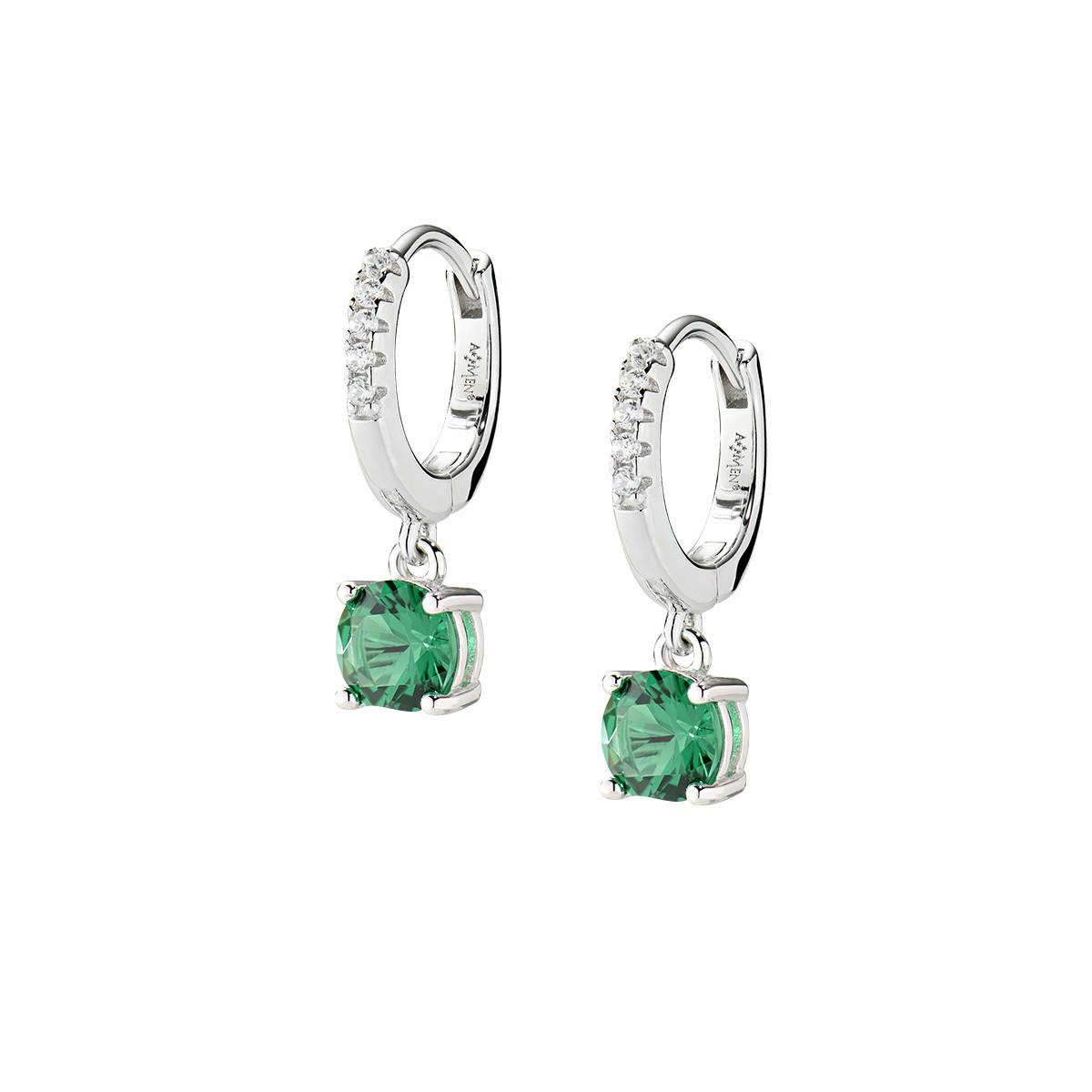 Orecchini donna amen, ECIPBBVEZ, collezione lady, in argento 925 rodiato con zirconi bianchi e verdi, Lunghezza totale degli orecchini: 1, 8 cm.
