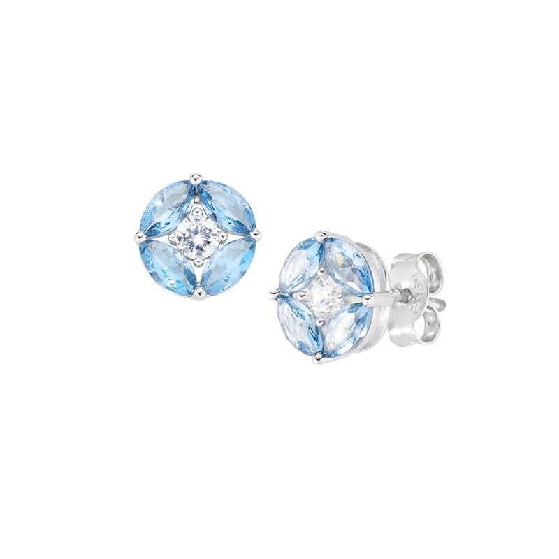Orecchini donna amen, EKABLBZ, collezione lady, in argento 925 rodiato con zirconi london blue e bianchi. Dimensioni: 7 mm. Chiusura a farfallina