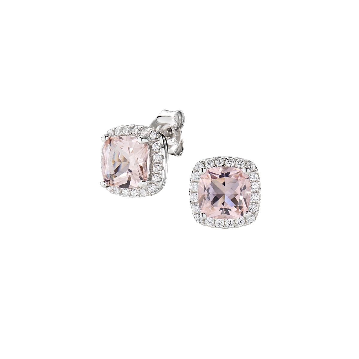 Orecchini donna amen, EQUABBMOZ, collezione lady, in argento 925 rodiato con morganite e zirconi bianchi.