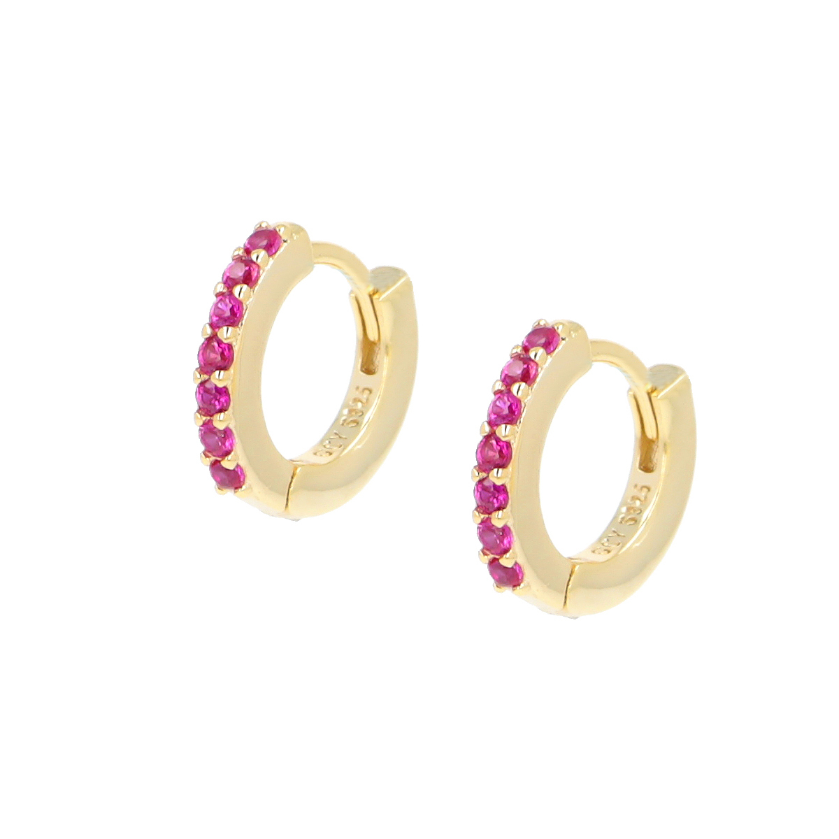 Orecchini donna amen, ET1GR, collezione tennis, in argento 925 rodiato e zirconi rossi, diametro 1, 2cm