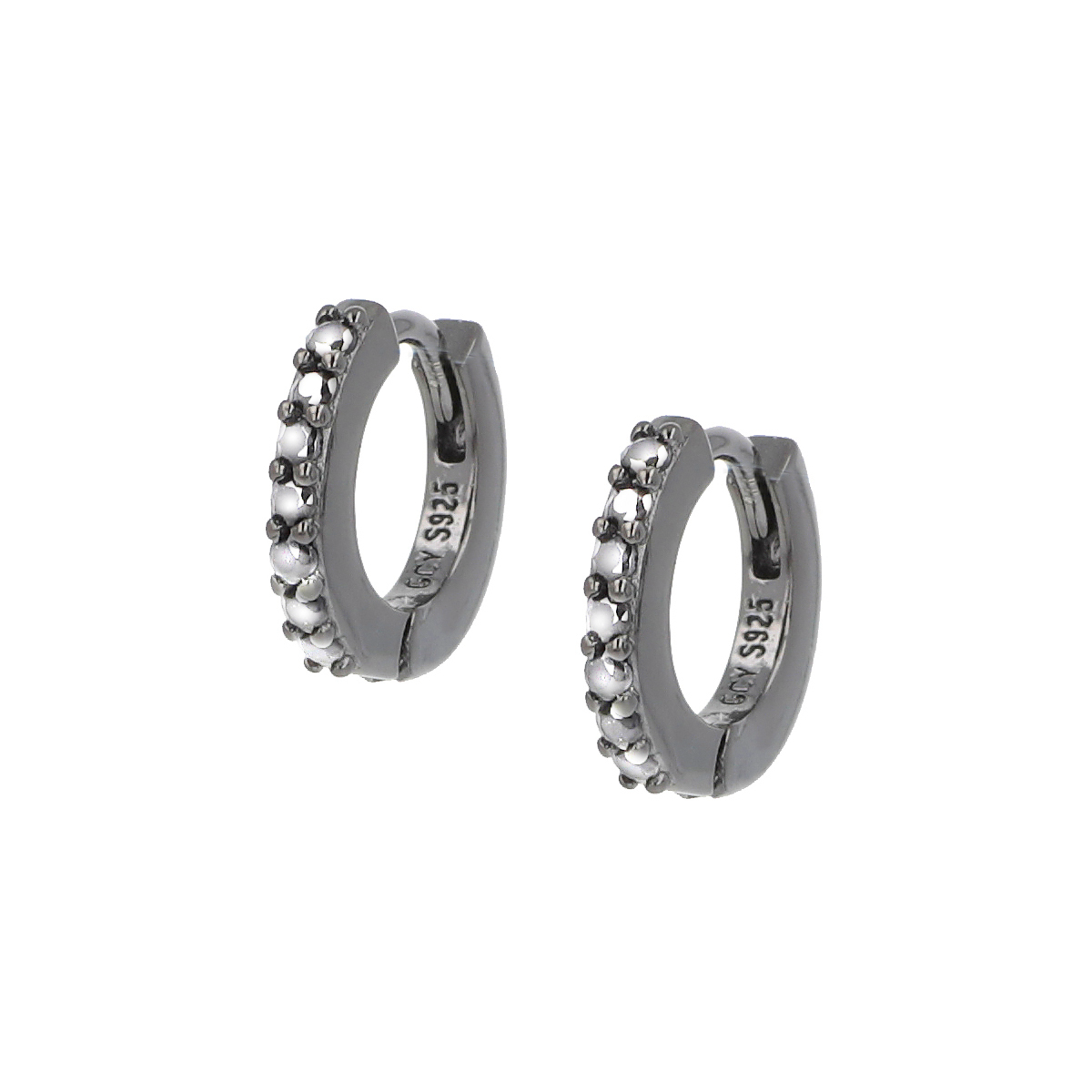 Orecchini donna amen, ET1NB, collezione tennis, in argento 925 rutenio e zirconi bianchi, diametro 1, 2cm