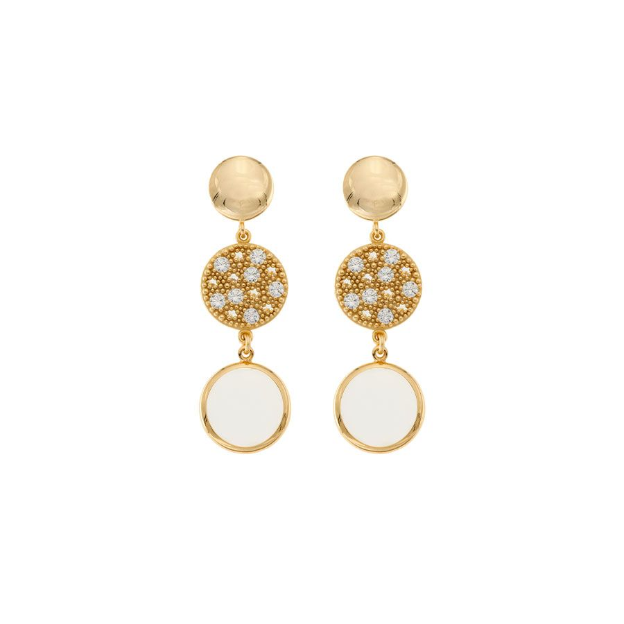 Orecchini donna aquaforte, H4180237, collezione reverse, in argento 925 placcato in oro giallo 23kt con pietre e zirconi, diametro 16mm