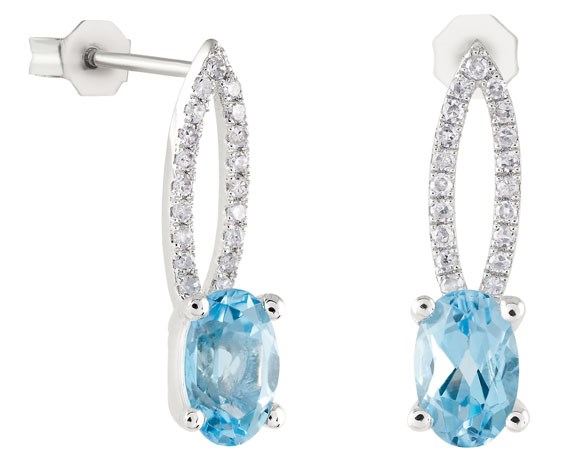 Orecchini donna bliss, 20047492, collezione atlantide, in oro bianco 18kt con pietre e diamanti 0.126ct colore h