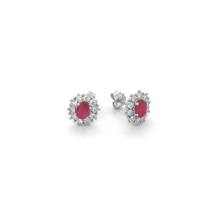 Orecchini donna bliss, 20096597, collezione charleston, in oro bianco 18kt con diamanti 0.30ct colore gh e rubini 0.70ct