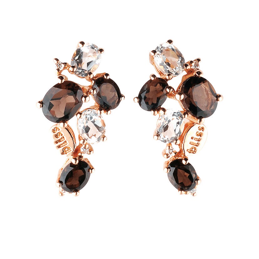 Orecchini donna bliss, 20027651, collezione cleopatra, in oro rosato 18kt, con pietre quarzo e diamanti 0, 033
