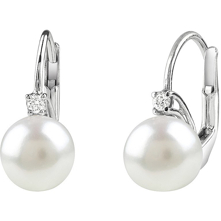 Orecchini donna bliss, 20080031, collezione prime, in oro bianco 18kt, perle e diamante 0, 02ct