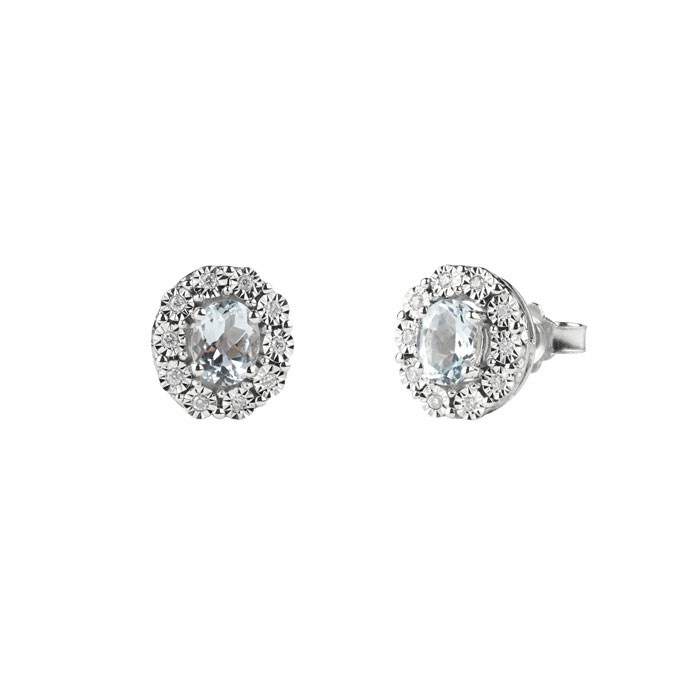 Orecchini donna bliss, 20073969, collezione regal, novità. In oro bianco con diamanti 0, 08 carati e acquamarina di 0, 90 carati.
