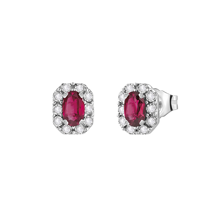 Orecchini donna bliss, 20102527, collezione regal, in oro bianco 18kt con diamanti 0, 10ct e rubino 0, 60ct
