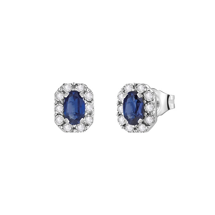 Orecchini donna bliss, 20102526, collezione regal, in oro bianco 18kt con diamanti 0, 10ct e zaffiri 0, 60ct