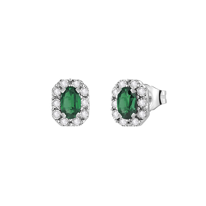 Orecchini donna bliss, 20102528, collezione regal, in oro bianco 18kt con diamanti 0, 10ct e smeraldi 0, 50ct