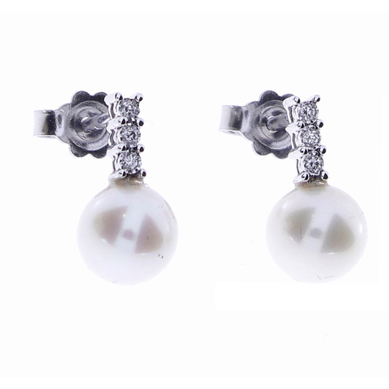 Orecchini donna bliss, 20088265, collezione rugiada, in oro bianco 18kt, diamanti e perle
