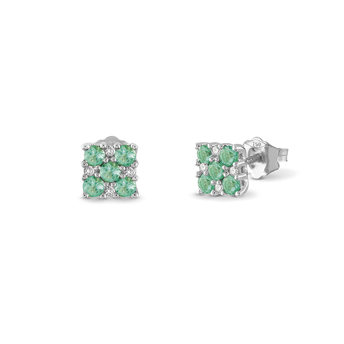 Orecchini donna bliss, 20104734, collezione rugiada colors, in oro bianco 18kt Tipo Pietra: Diamante/smeraldo Taglio pietra: Rotondo Caratura: 0.06 Ct.pietre fini: 0.65 Colore Diamante: G Purezza: SI