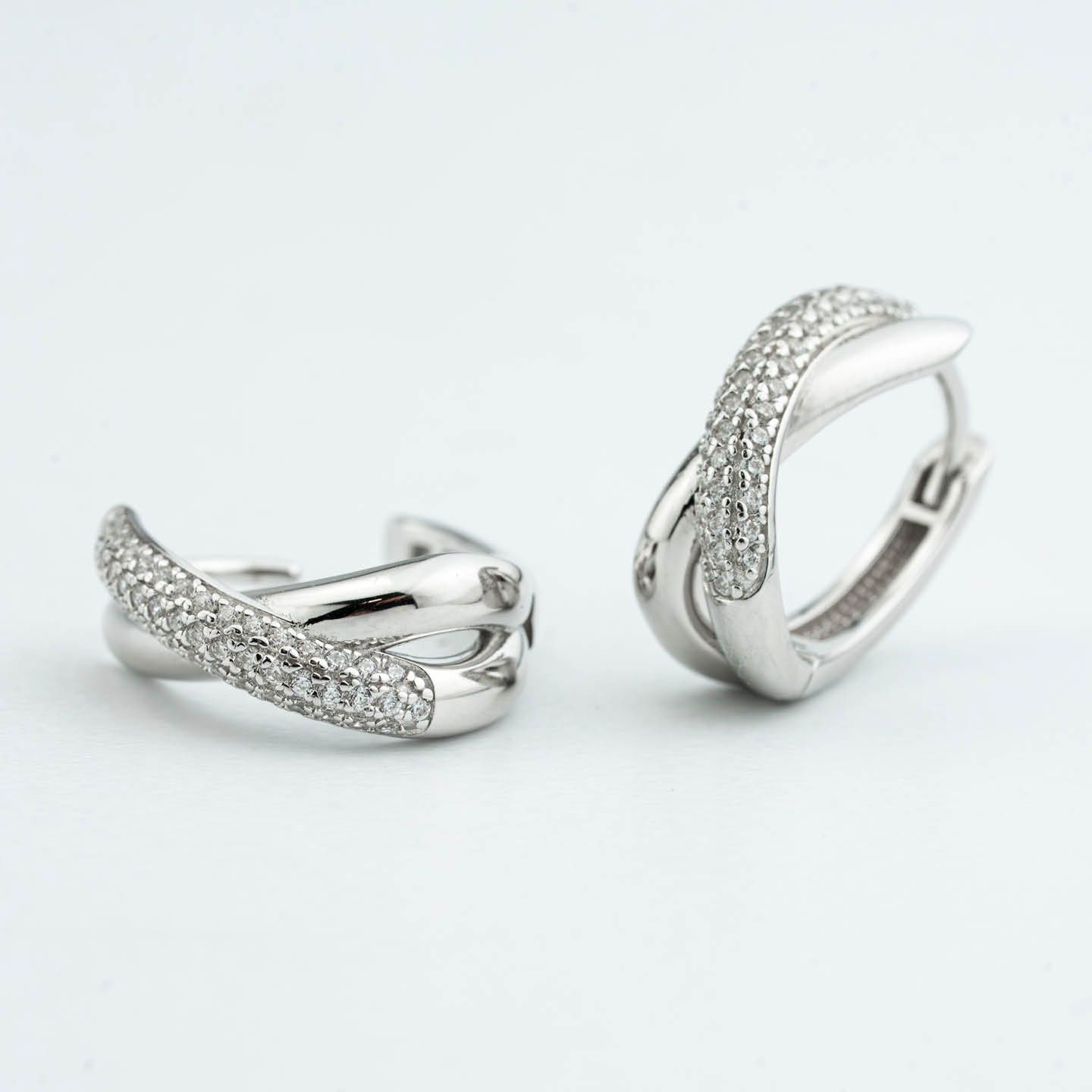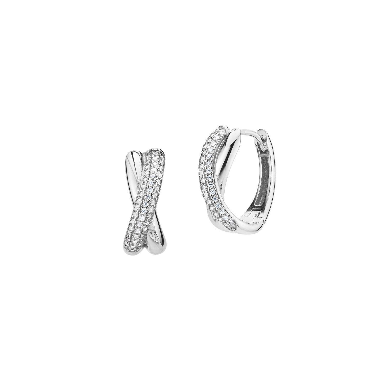 Orecchini donna boccadamo, BOR181, collezione aurora, in argento dalla superficie liscia, in pavè di zirconi e chiusura a monachella.