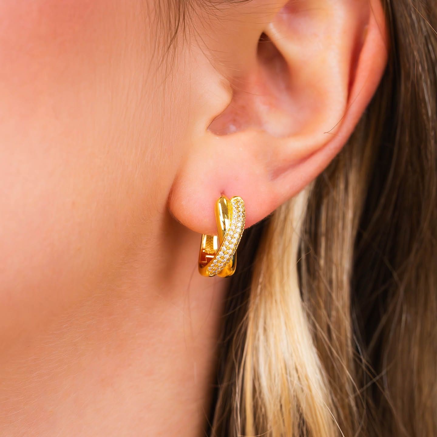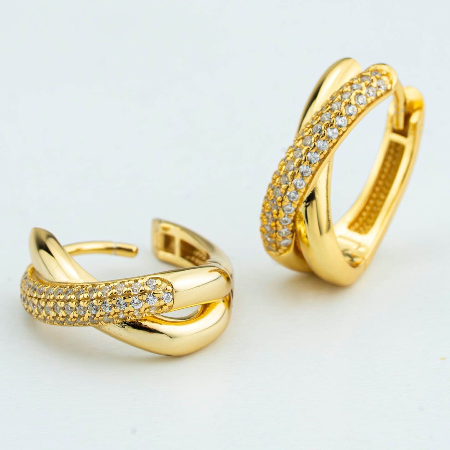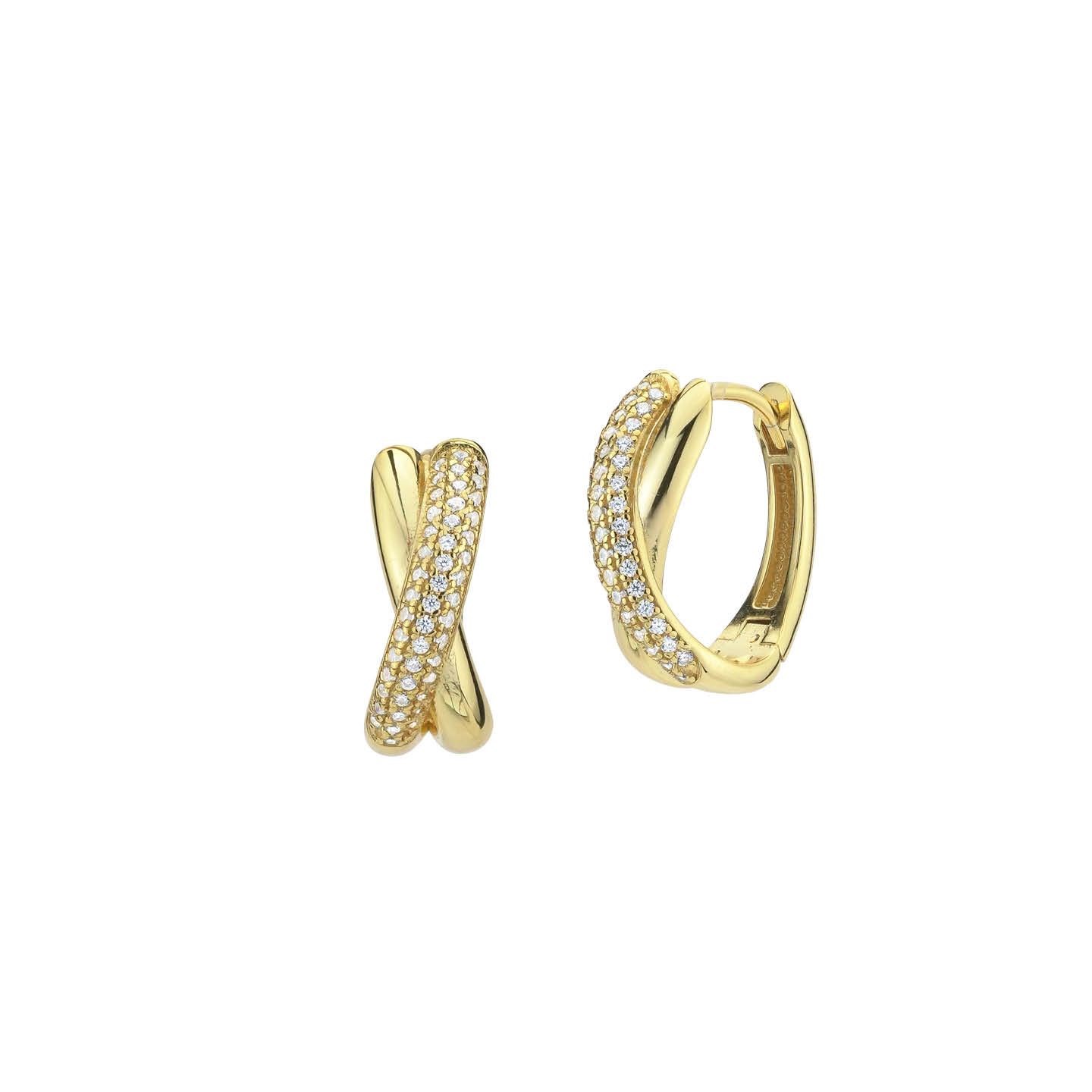Orecchini donna boccadamo, BOR181D, collezione aurora, in argento placcato oro giallo dalla superficie liscia, in pavè di zirconi e chiusura a monachella.