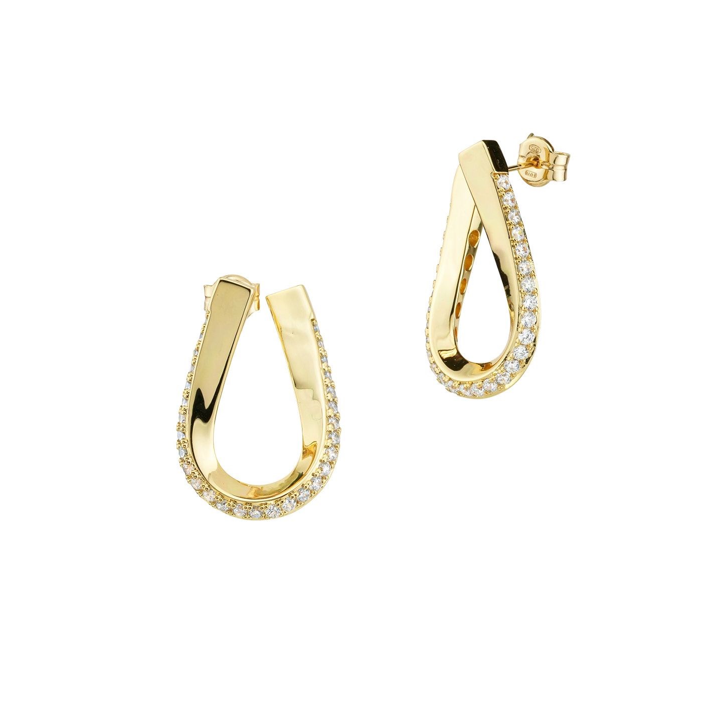 Orecchini donna boccadamo, KOR051D, collezione caleida, in bronzo placcati oro giallo a lobo con pendente a goccia contrarié definito da zirconi Misure: cm 3 Dimensione: zirconi mm 4