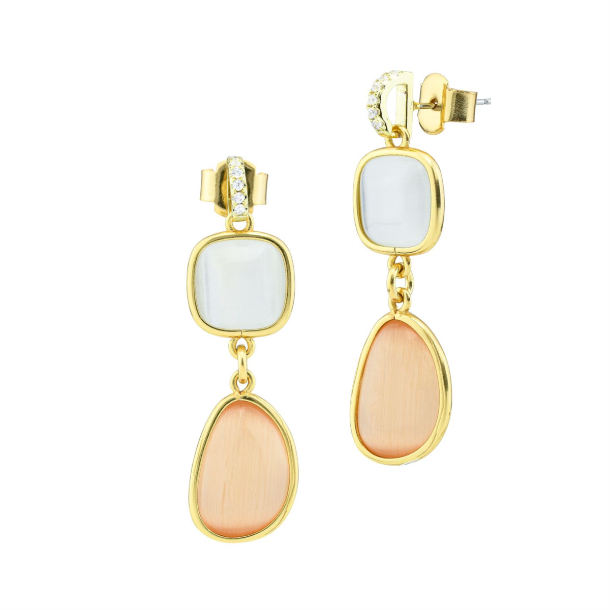 Orecchini donna boccadamo, XOR728DO, collezione crisette, in bronzo placcati oro giallo a lobo con cristalli pendenti di colore white e orange con contromaglia di zirconi