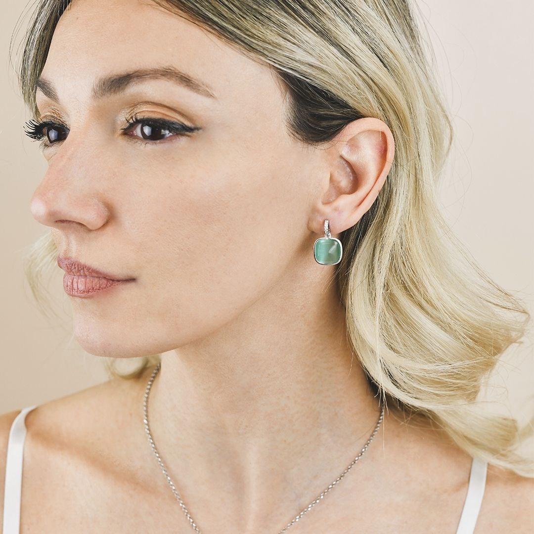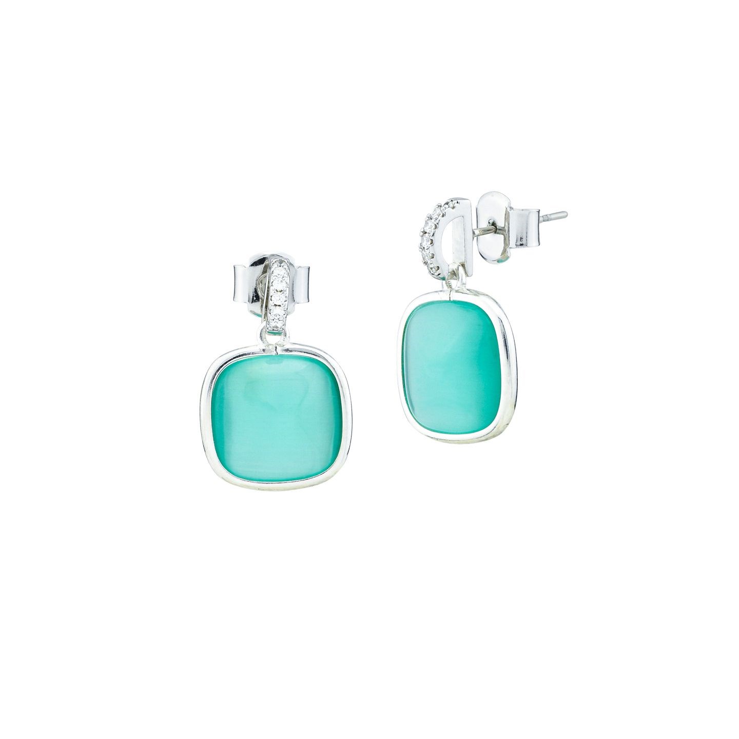 Orecchini donna boccadamo, XOR727A, collezione crisette, in bronzo rodiato con cristallo pendente di colore acquamarina e zirconi. Dimensione: cristallo cm 1, 3
