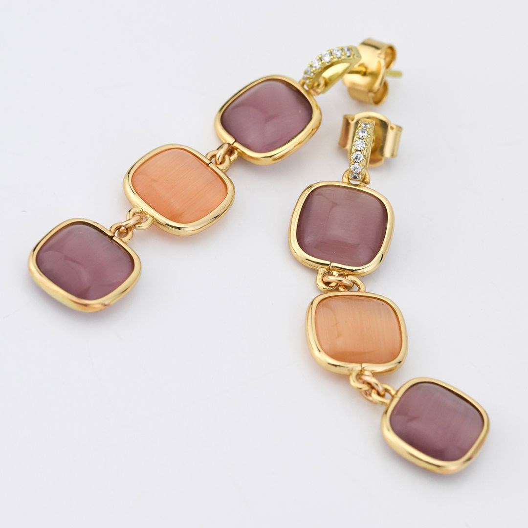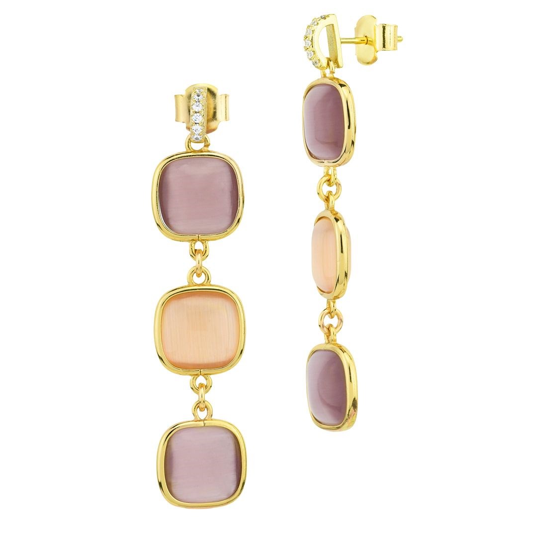 Orecchini donna boccadamo, XOR741D, collezione crisette, in bronzo placcato oro giallo con cristalli pendenti ametista viola e miele. Dimensione: lunghezza pendente cm 4; cristallo cm 1, 1