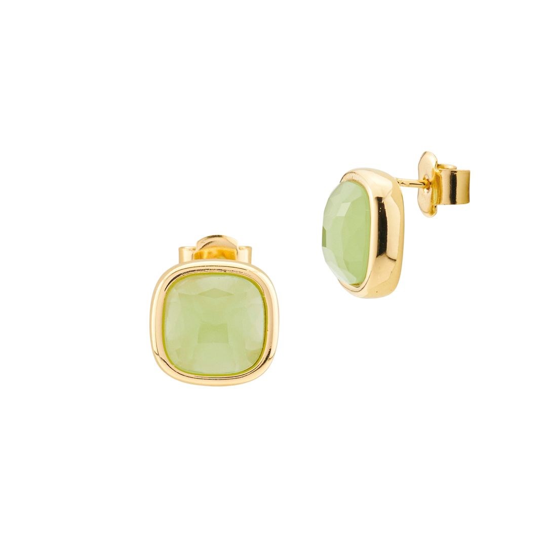Orecchini donna boccadamo, XOR721DV, collezione crisette, in bronzo placcati oro giallo con cristallo sfaccettato color verde chiaro. Dimensione: cristallo cm 1, 3
