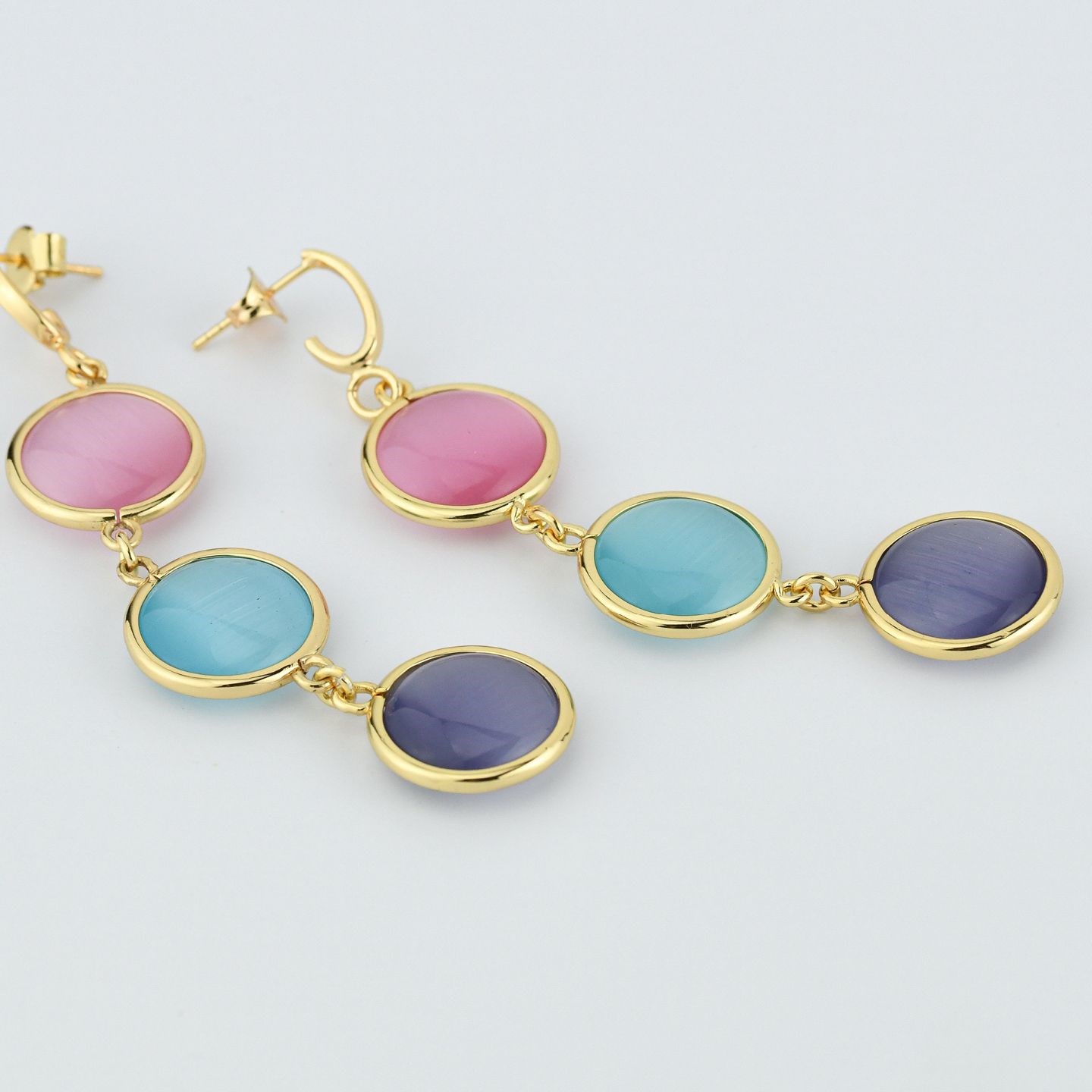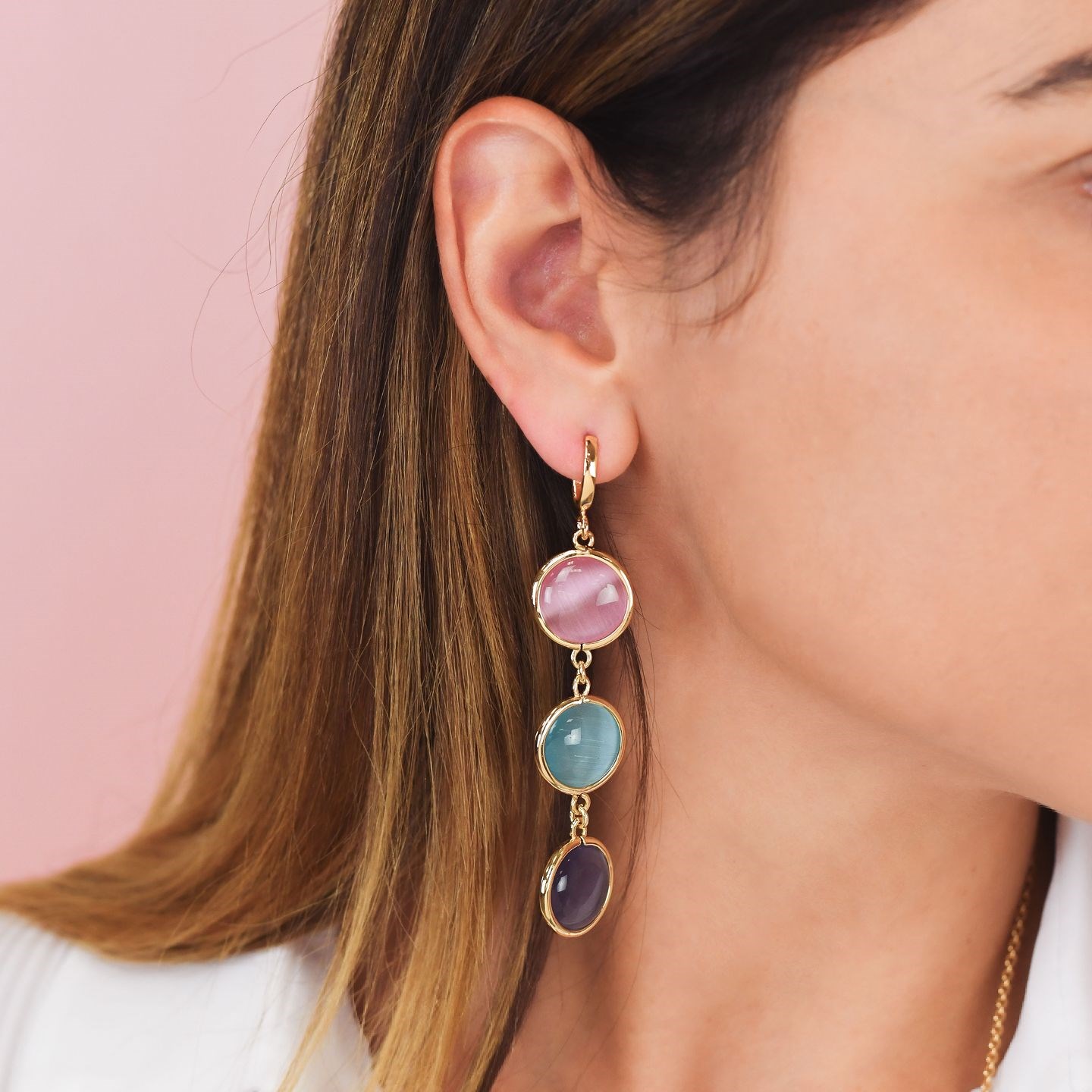 Orecchini donna boccadamo, XOR759DV, collezione crisette, in bronzo con placcatura dorata e cristalli rosa chiaro, celeste e viola scuro pendenti. Dimensione: cristallo cm 1, 5; lunghezza pendente cm 5
