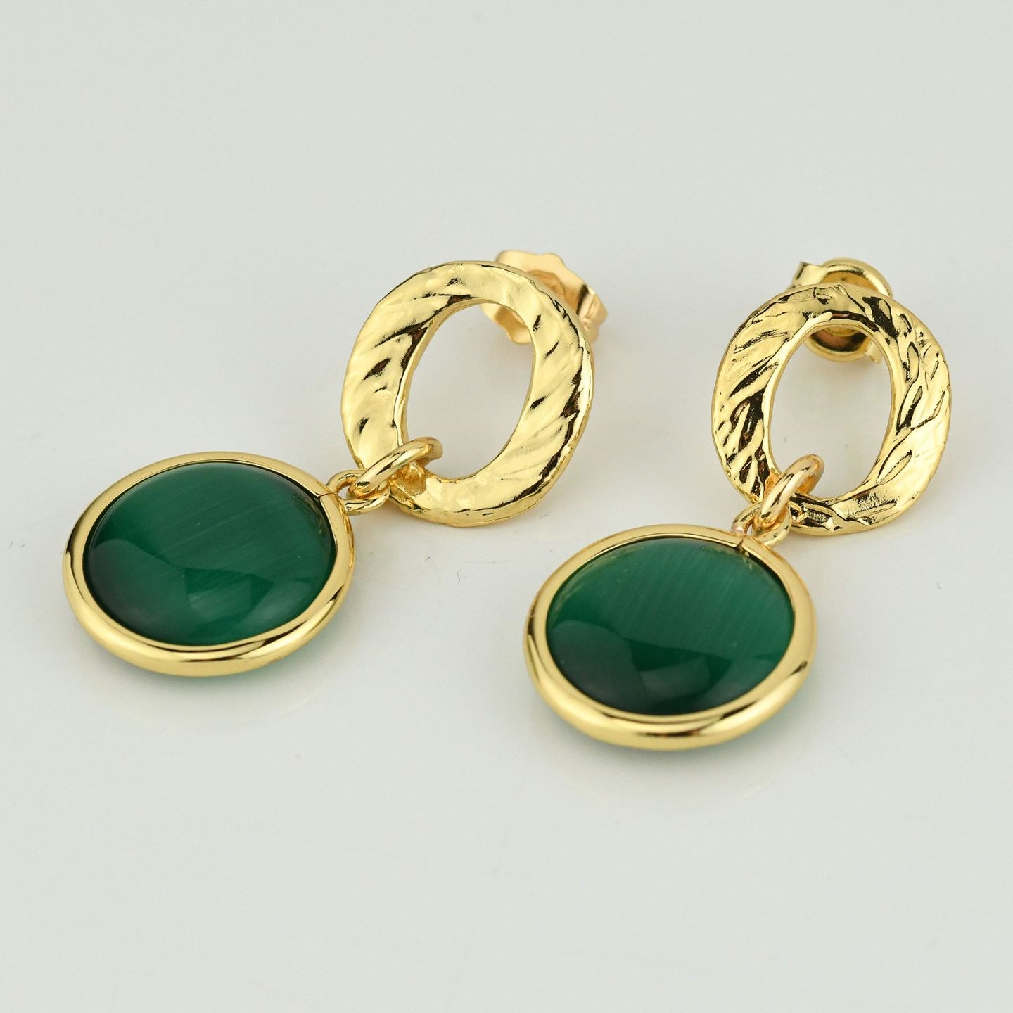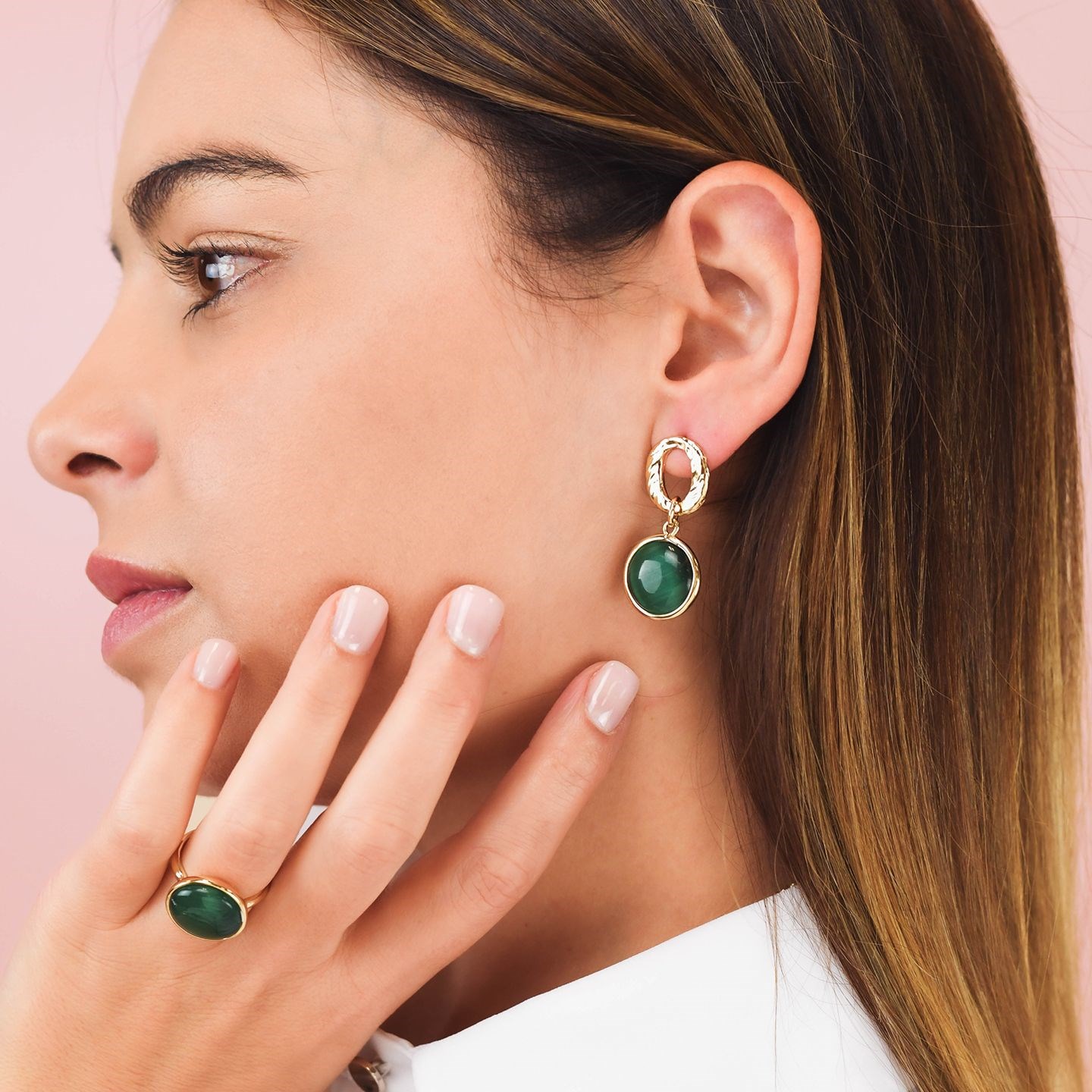 Orecchini donna boccadamo, XOR754DE, collezione crisette, in bronzo placcati oro pendenti con cristalli verde scuro e modulo circolare Dimensione: cristallo cm 1, 5; lunghezza pendente cm 3, 5 Chiusura: a farfalla