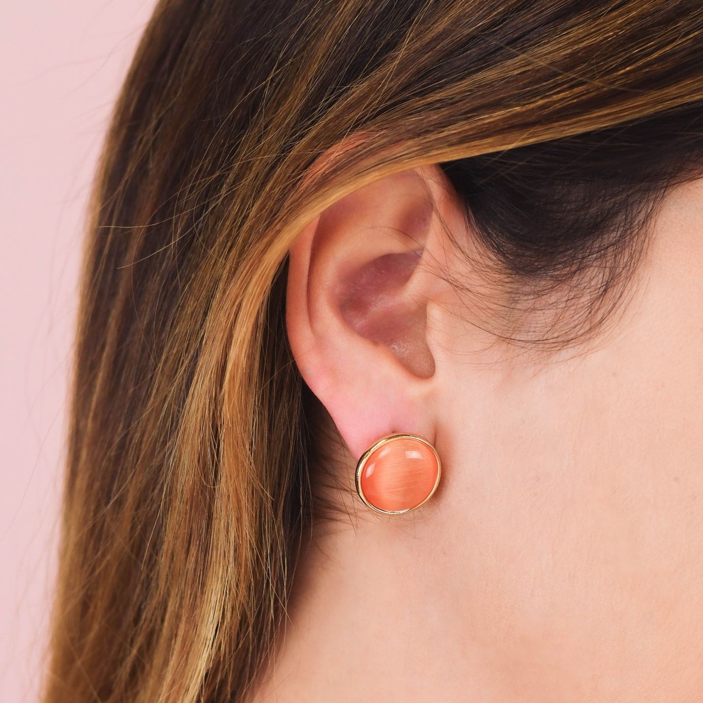 Orecchini donna boccadamo, XOR753DO, collezione crisette, in bronzo placcati oro giallo, con cristalli effetto cabochon di colore arancio scuro Dimensione: cristallo cm 1, 5