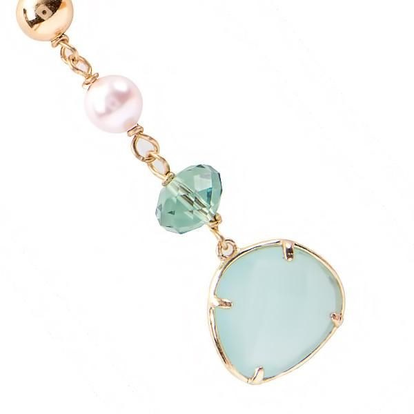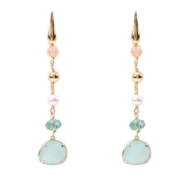 Orecchini donna boccadamo, XOR110D, collezione crisette, pendenti in bronzo placcato oro giallo con cristalli briolette verdi, perle Swarovski Rosaline e cristalli light peach (lunghezza cm 8).