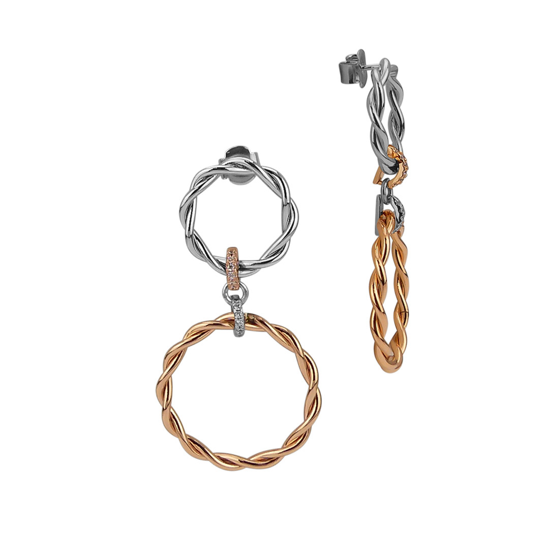 Orecchini donna boccadamo, XOR699RS, collezione magic circle, in bronzo placcato oro rosa e rodiato, lunghezza 5cm