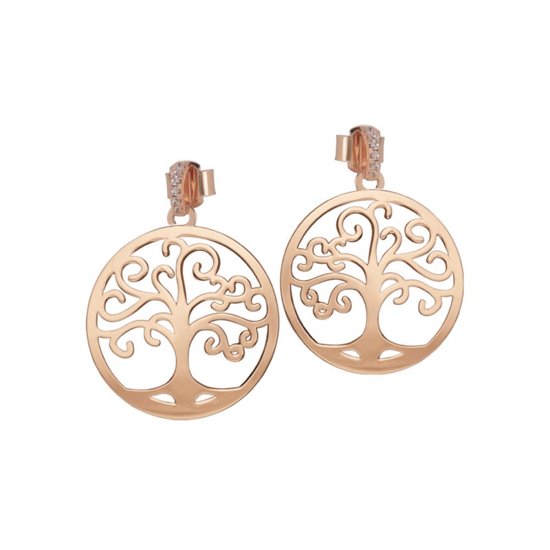 Orecchini donna boccadamo, Xor494rs, collezione my trees, pendente albero della vita in bronzo rosato con finitura in cristalli lunghezza cm 3