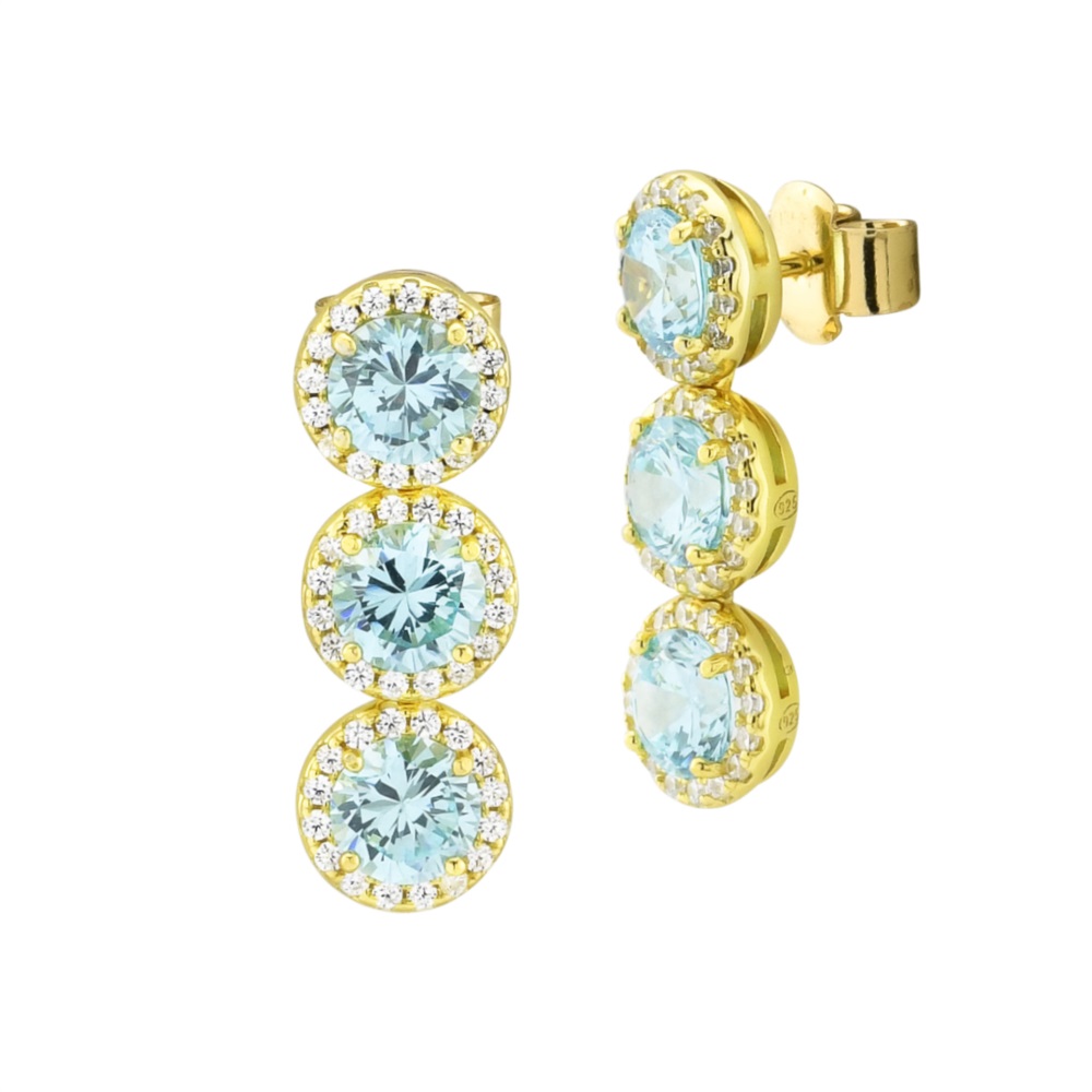 Orecchini donna boccadamo, OR827DA, collezione sophie, in argento 925 dorato, con cristalli acqua marina e zirconi bianchi