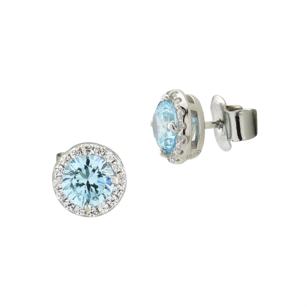 Orecchini donna boccadamo, Or826a, collezione sophie, in argento 925 rodiato, con cristallo acqua marina e zirconi bianchi