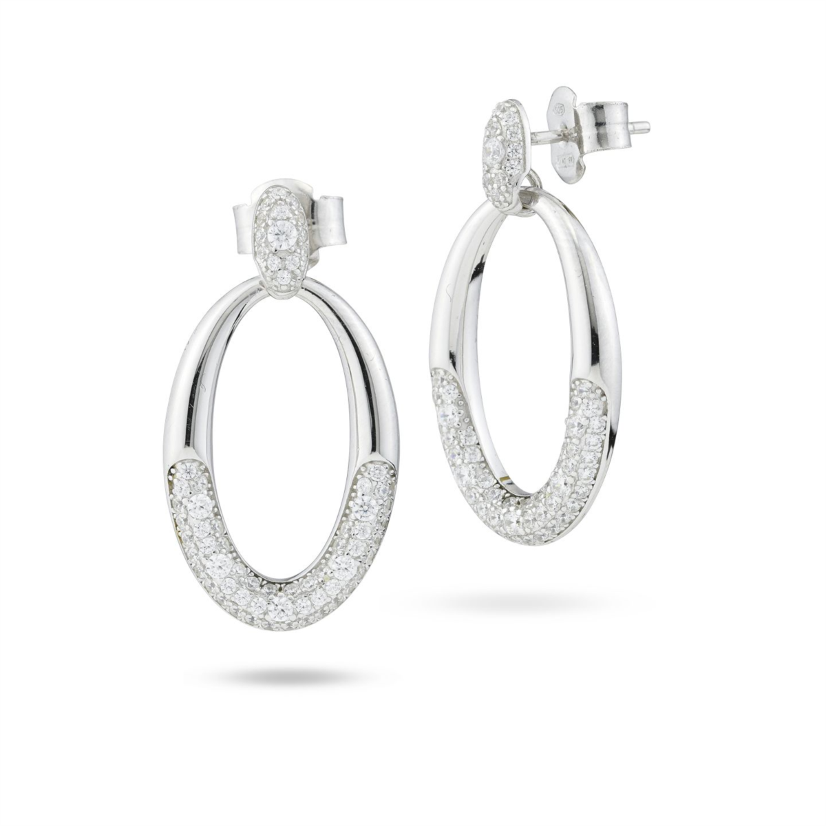 Orecchini donna boccadamo, OR884, collezione sophie, in argento con modulo ovale grande pendente di pavè di zirconi e perno pavettato