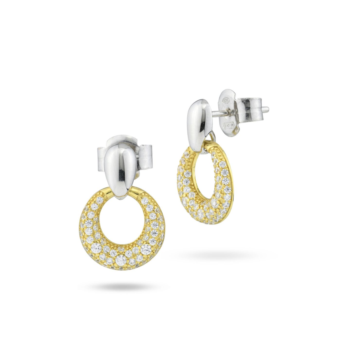 Orecchini donna boccadamo, OR876D, collezione sophie, in argento placcati oro giallo con modulo circolare pendente di pavè di zirconi e perno liscio rodiato