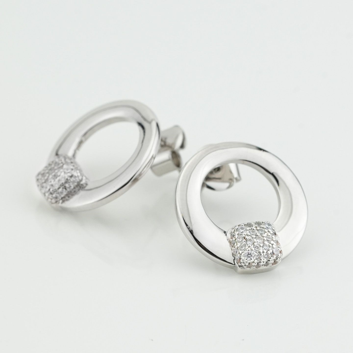 Orecchini donna bocadamo, XOR767, collezione starry, in bronzo rodiato con cerchi pendenti piccoli e quadrato centrale in pavè di zirconi. Misure: diametro cm 2 Dimensione: pavè mm 8x8 Chiusura: a farfalla