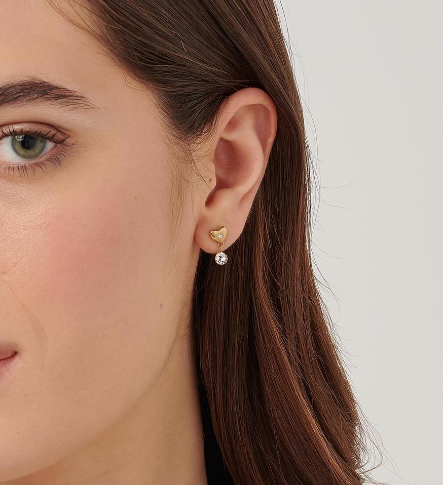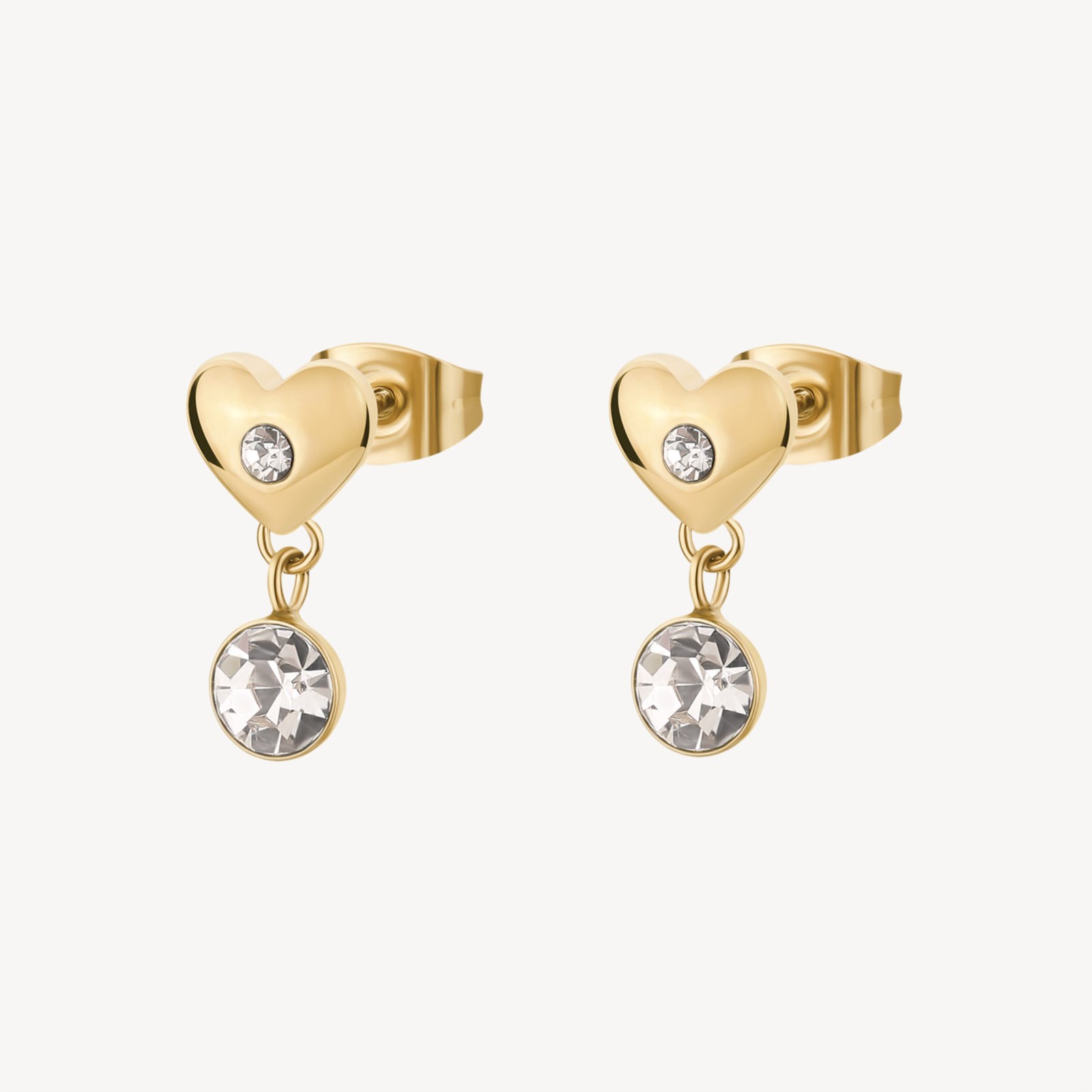 Orecchini donna brosway, BHKE177, collezione chakra, in acciaio 316L e finitura dorato a forma di cuore e cristalli. Misura orecchini:17mm