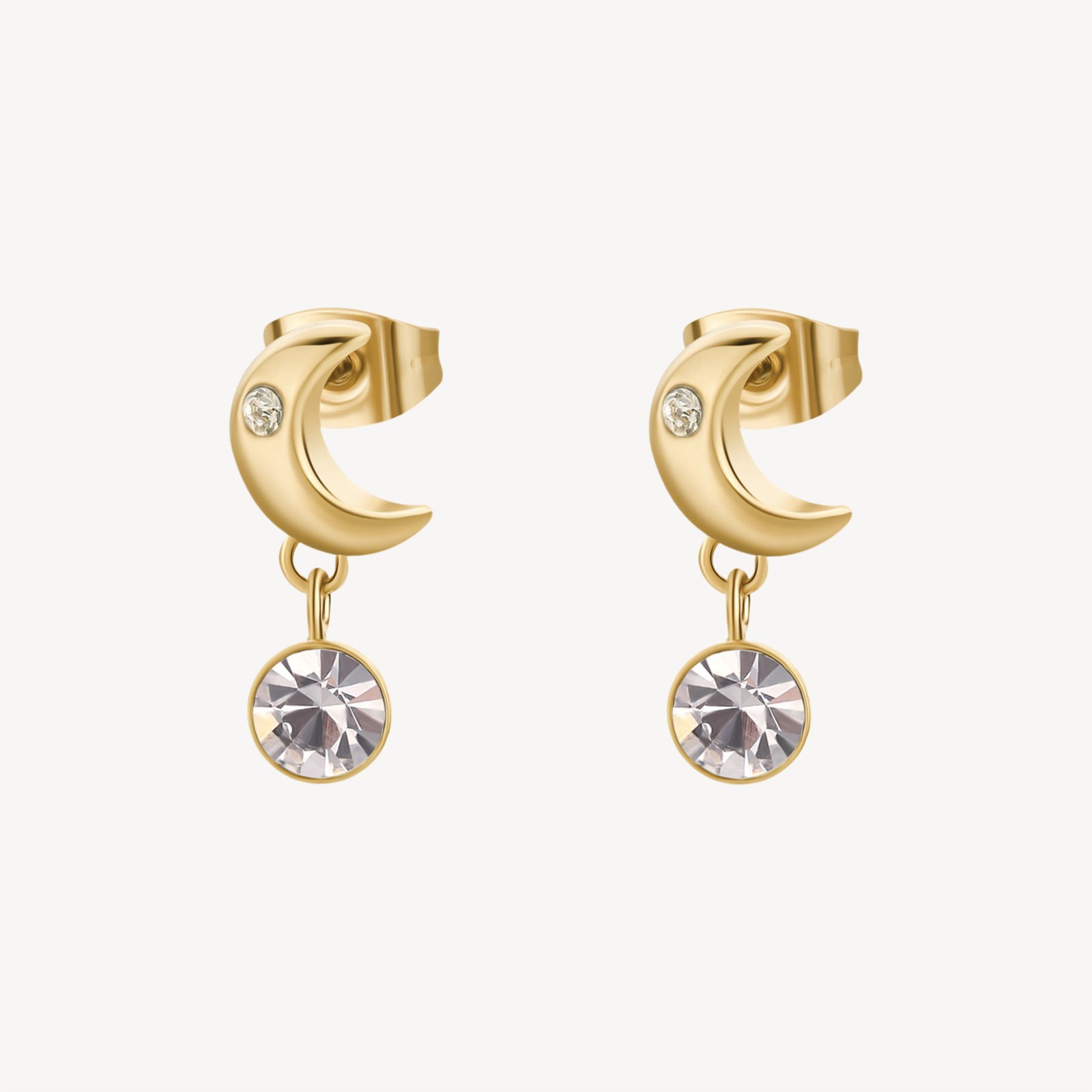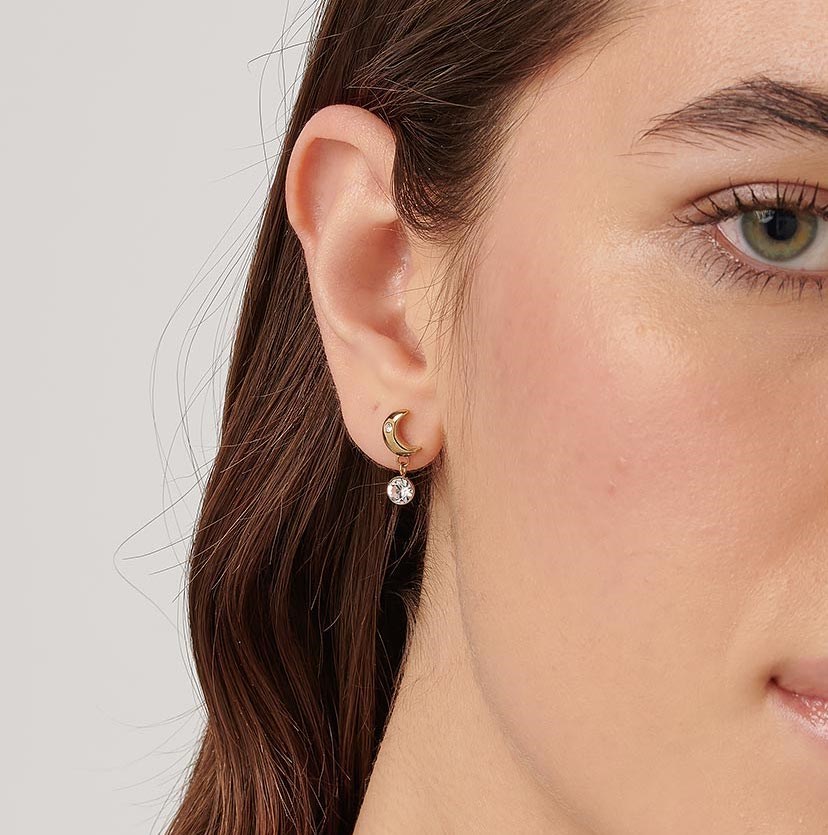 Orecchini donna brosway, BHKE181, collezione chakra, in acciaio 316L e finitura dorata a forma di luna e cristalli. Misura orecchini:17m