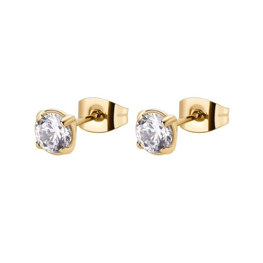 Orecchini donna brosway, BEIE008, collezione desideri, in acciaio finitura oro 14k e zirconi, misura 5, 6mm