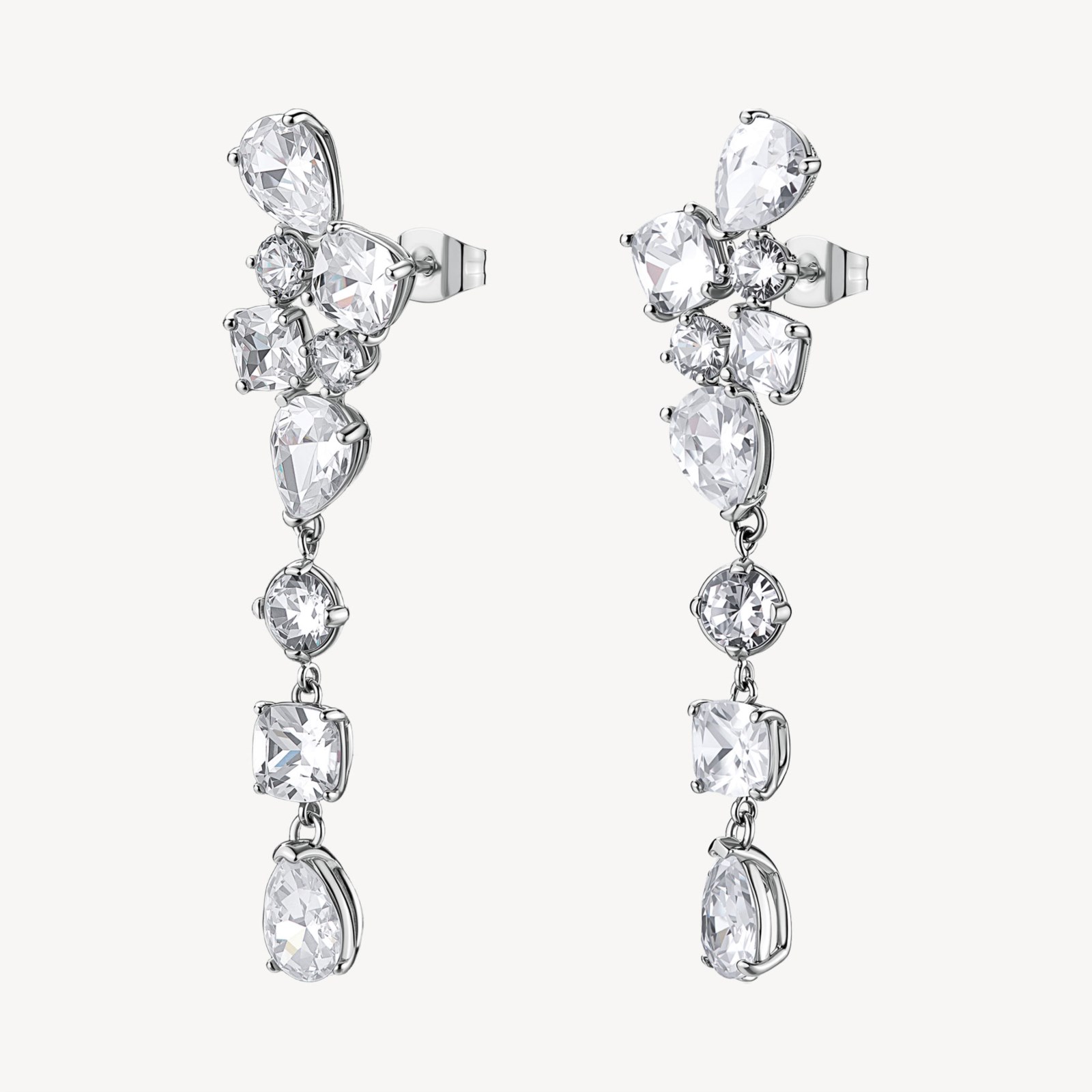 Orecchini donna brosway, BIG24, collezione dreaming, in acciaio 316L con cubic zirconia pendenti. Misura orecchini: 50mm