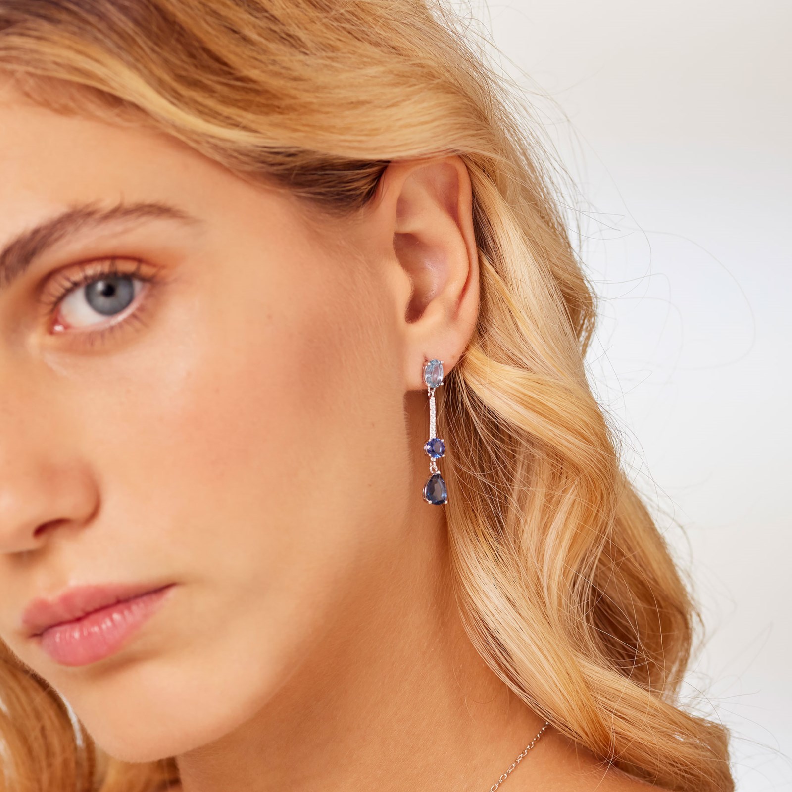 Orecchini donna brosway, FFB133, collezione fancy, pendenti in argento rodiato 925‰ con cubic zirconia chiari e cubic zirconia colore sapphire. Misura orecchini: 36, 5mm