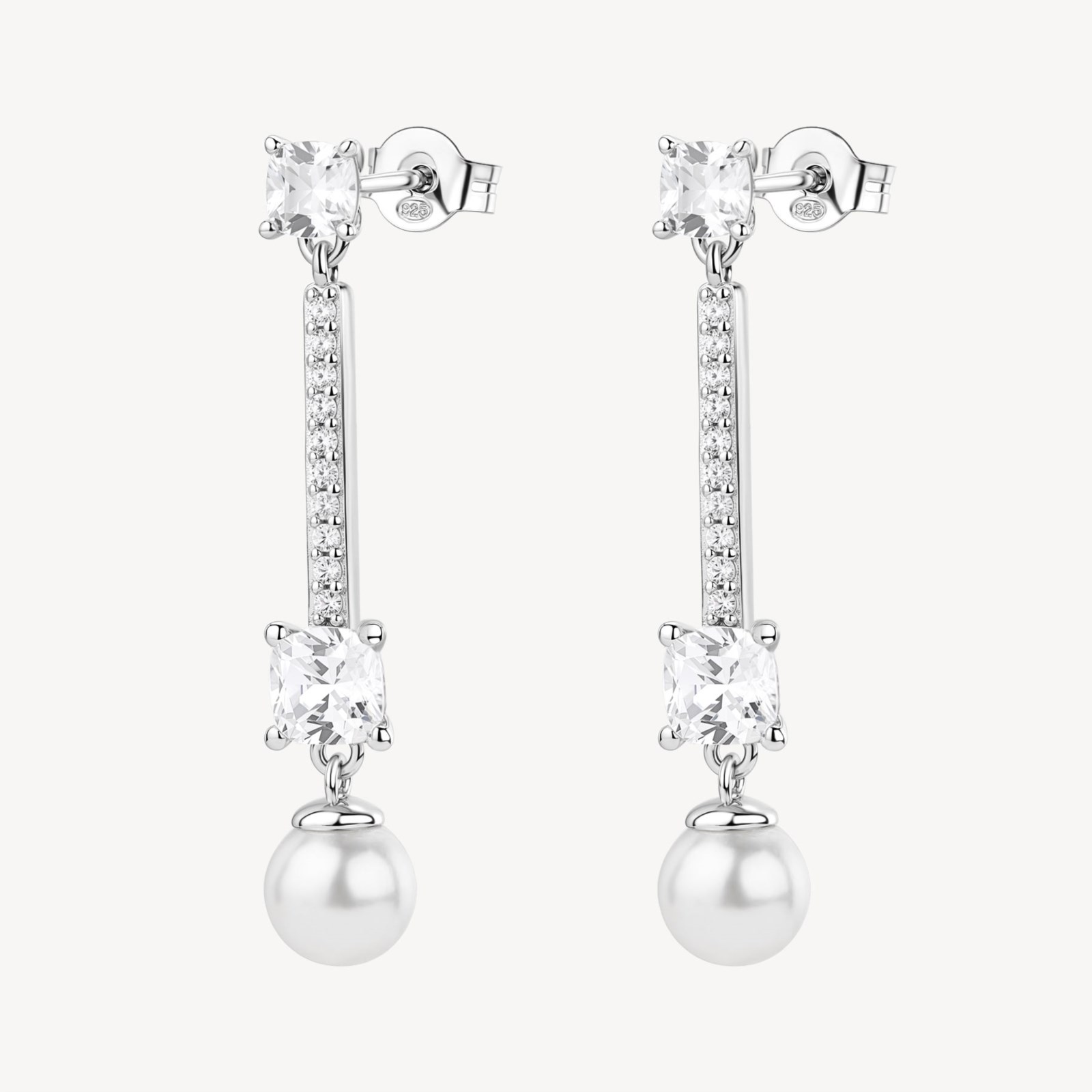 Orecchini donna brosway, FIW175, collezione fancy, in argento rodiato 925‰ con perle di conchiglia e cubic zirconia. Misura orecchini: 34, 5mm